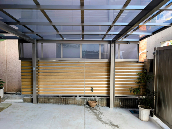 A. はい、施工可能です!コンクリートの場合は専用の機械で穴を開ける「コア抜き」という作業を行い、そこに柱を立ててしっかり固定します。土の場合も基礎ブロックを埋めて施工しますので、どんなお庭でもバッチリ仕上げます。