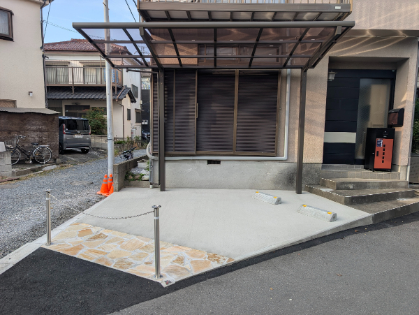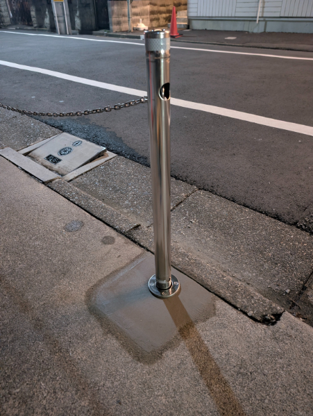 A. もちろん可能です!既存のコンクリートにカッターで綺麗に切れ目を入れ、設置部分だけを専用の機械で砕いて穴を開ける「ハツリ工事」を行います。そこに新しいポールを埋め込んでモルタルで固定し、後付けでも美しく仕上げます。