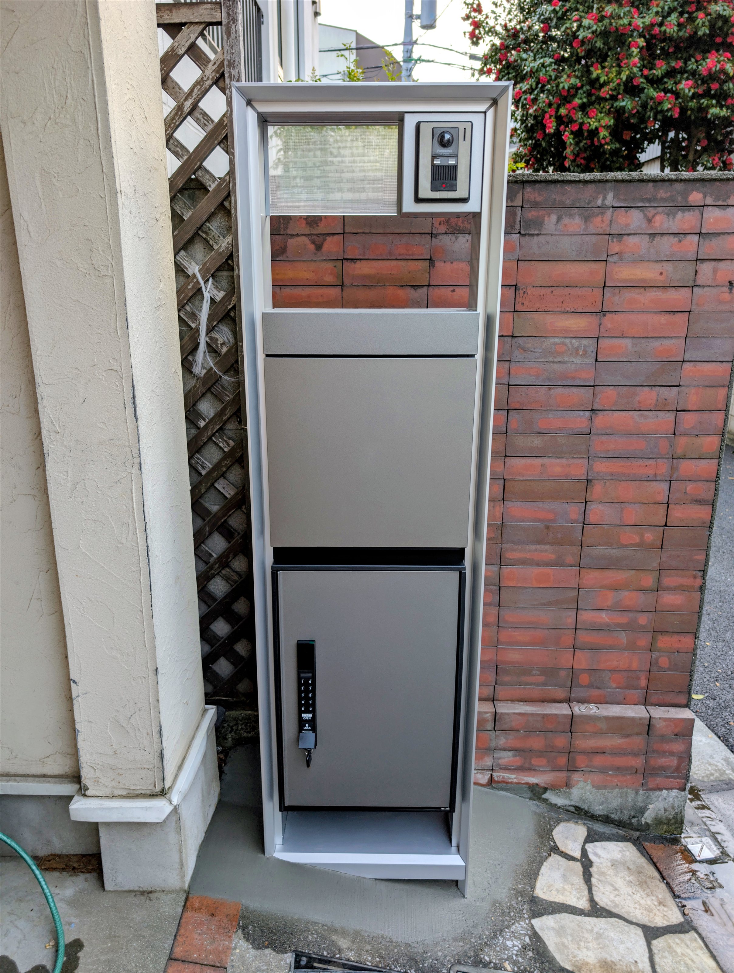 東京23区の宅配ボックス設置工事なら「バンシーロ」。ネット購入・施主支給のPanasonicコンボ・LIXIL・ナスタ等に完全対応!アンカー固定、ポール埋め込み、機能門柱への設置もプロにお任せ。基本工賃8,000円〜。