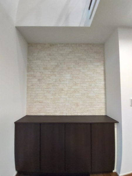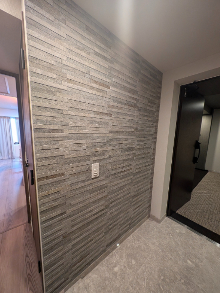 A. いいえ、BANSIIROでは必ず既存の壁紙を綺麗に剥がしてから施工します。壁紙の上から貼ると、エコカラットの重みで壁紙ごと剥がれ落ちる危険があるため、メーカー(リクシル)からも強く忠告されています。お客様の安全を第一に考え、下地に直接しっかりと接着させる確実な施工を行いますので安心してください。